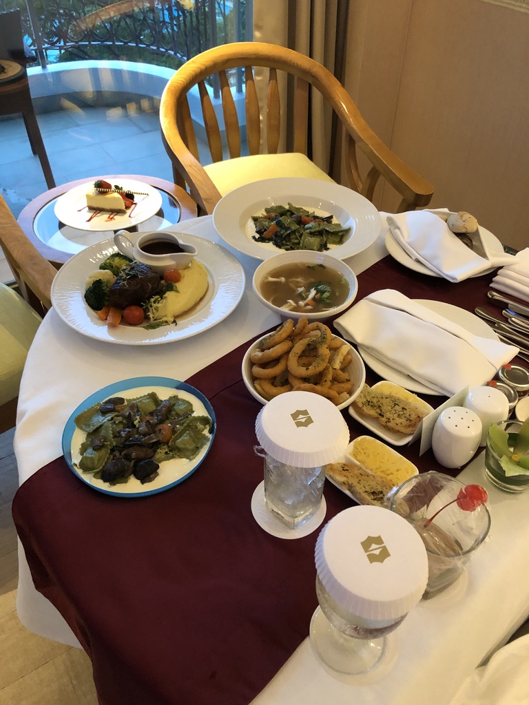 That night, we opted for in-room dining, and it turned out to be one of the best decisions of the trip. No need to wrangle a restless toddler in a restaurant — we could eat in peace while Baby J roamed the suite or just hung out beside us. The food was surprisingly good, and it made the evening feel both restful and special.