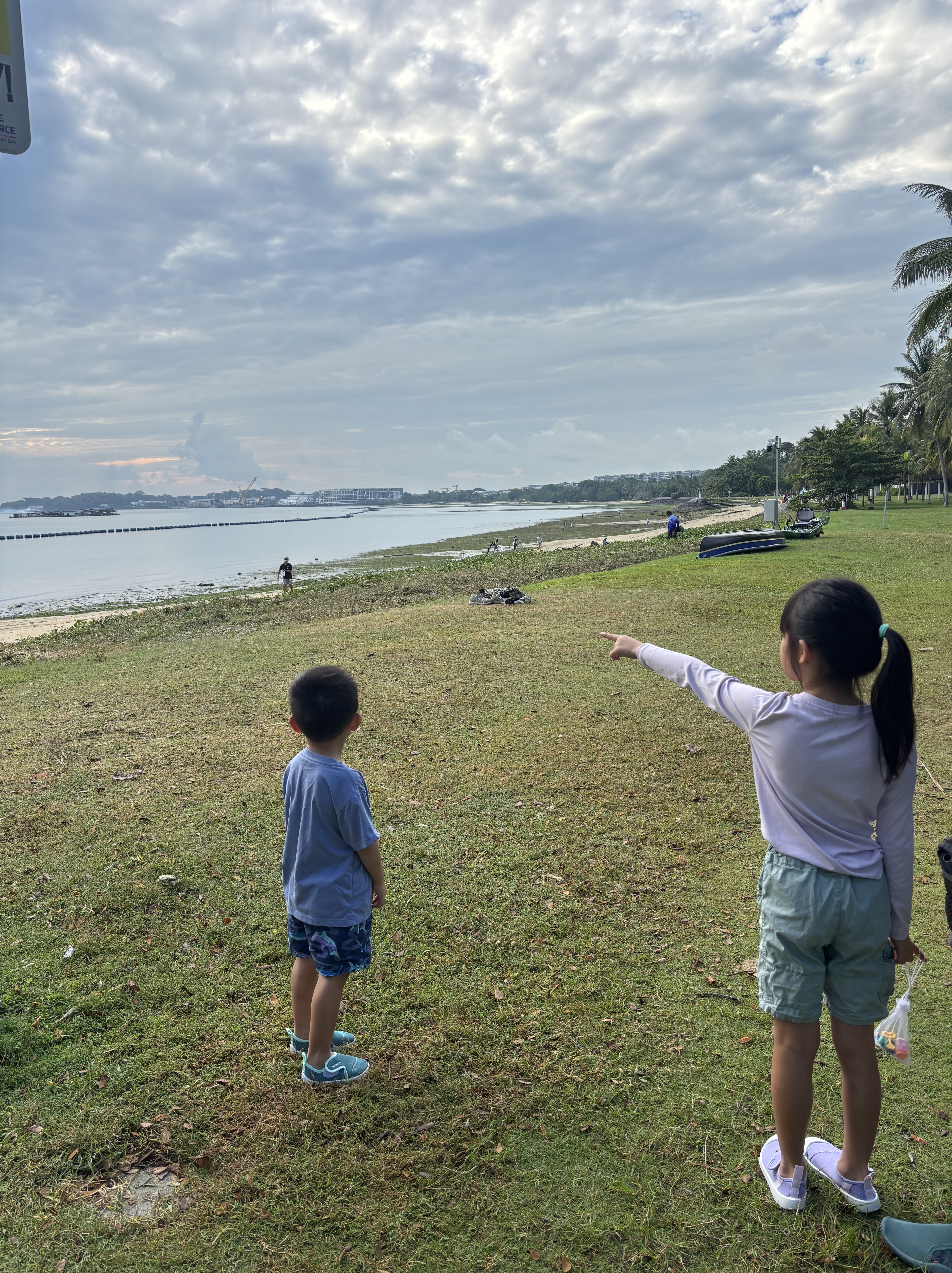 And best of all, it was at Pasir Ris Beach, practically in our backyard. No rushing across the island before sunrise — just a short drive away, which helped a lot when coaxing sleepy kids out of bed. We met at Carpark E, and from there, the intertidal zone was just a short stroll away — a few hundred metres at most.