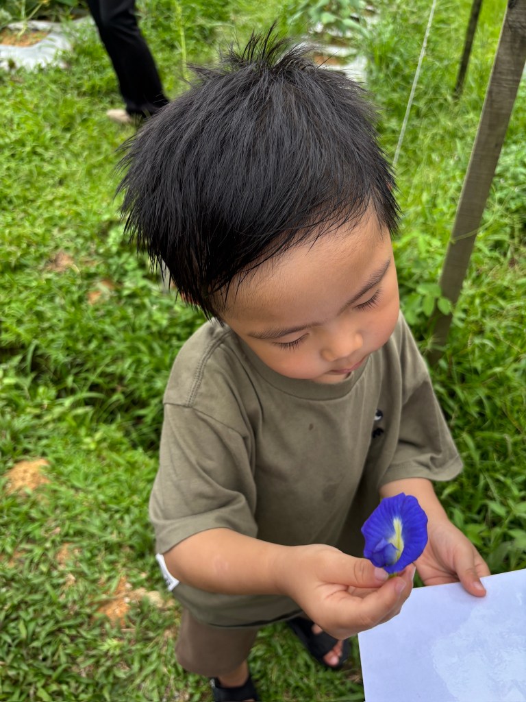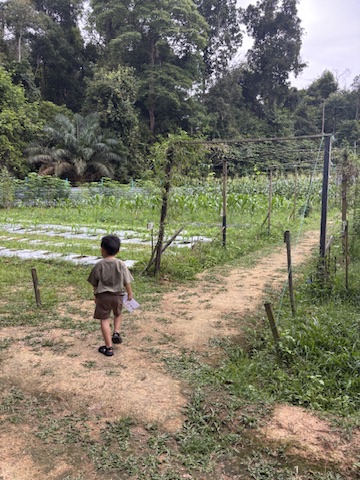 At 5pm, we joined the complimentary farm tour, where we got a peek into Talula Hill’s Zone 5 organic farm. The kids loved it — they got to pluck butterfly pea flowers (and eat them!), walk through rows of sweet corn, and see firsthand how the farm grows produce for the onsite Kefi Café and guests. (For those wondering: if you subscribe to their monthly veggie boxes, those come from another farm, also run by Talula.)