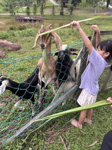 Without a doubt, the highlight of the day for the kids was the animal feeding sessions — also complimentary. They sprinted ahead, eager to meet the goats and spent a solid amount of time feeding them and giggling non-stop.