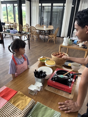 Shortly after check-in, we headed next door to the Event Block for a surprise bonus — a complimentary kids’ cooking class, part of their June summer camp lineup. The kids got hands-on and had a blast frying their own omelettes, followed by a craft session where they decorated wooden keychains. The entire activity lasted about an hour. It was a low-stress fun, engaging, and just the right pace for a holiday afternoon.