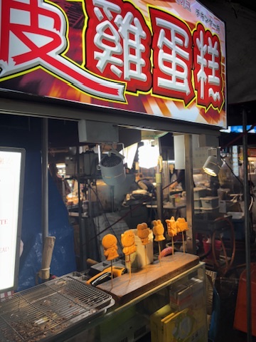 At one of the game stalls, there were three to four different versions of ball-throwing games, plus one danzhu game, which was honestly a little confusing at first. But it’s actually very simple — you buy trays of balls for NT$100 and just play.