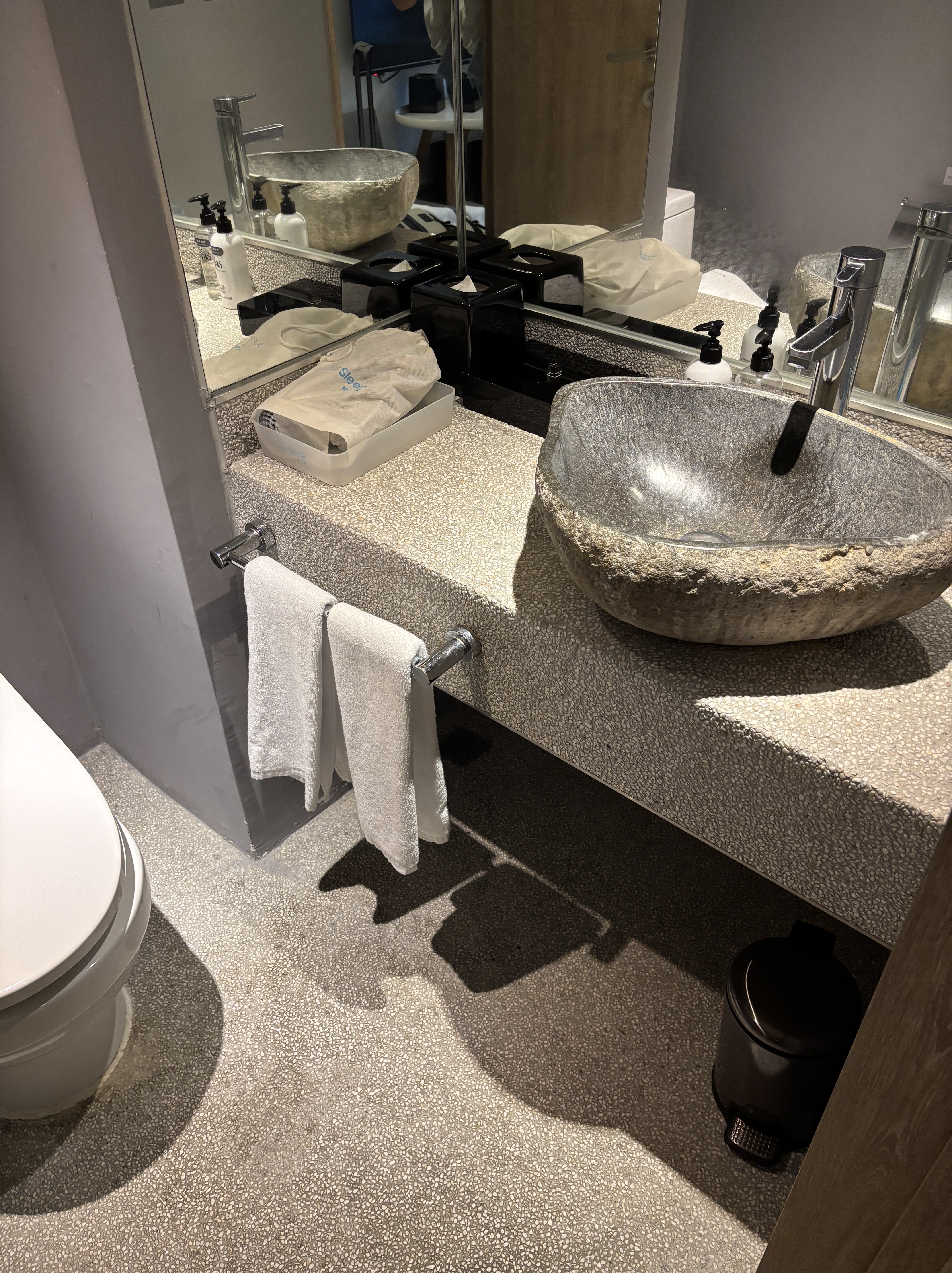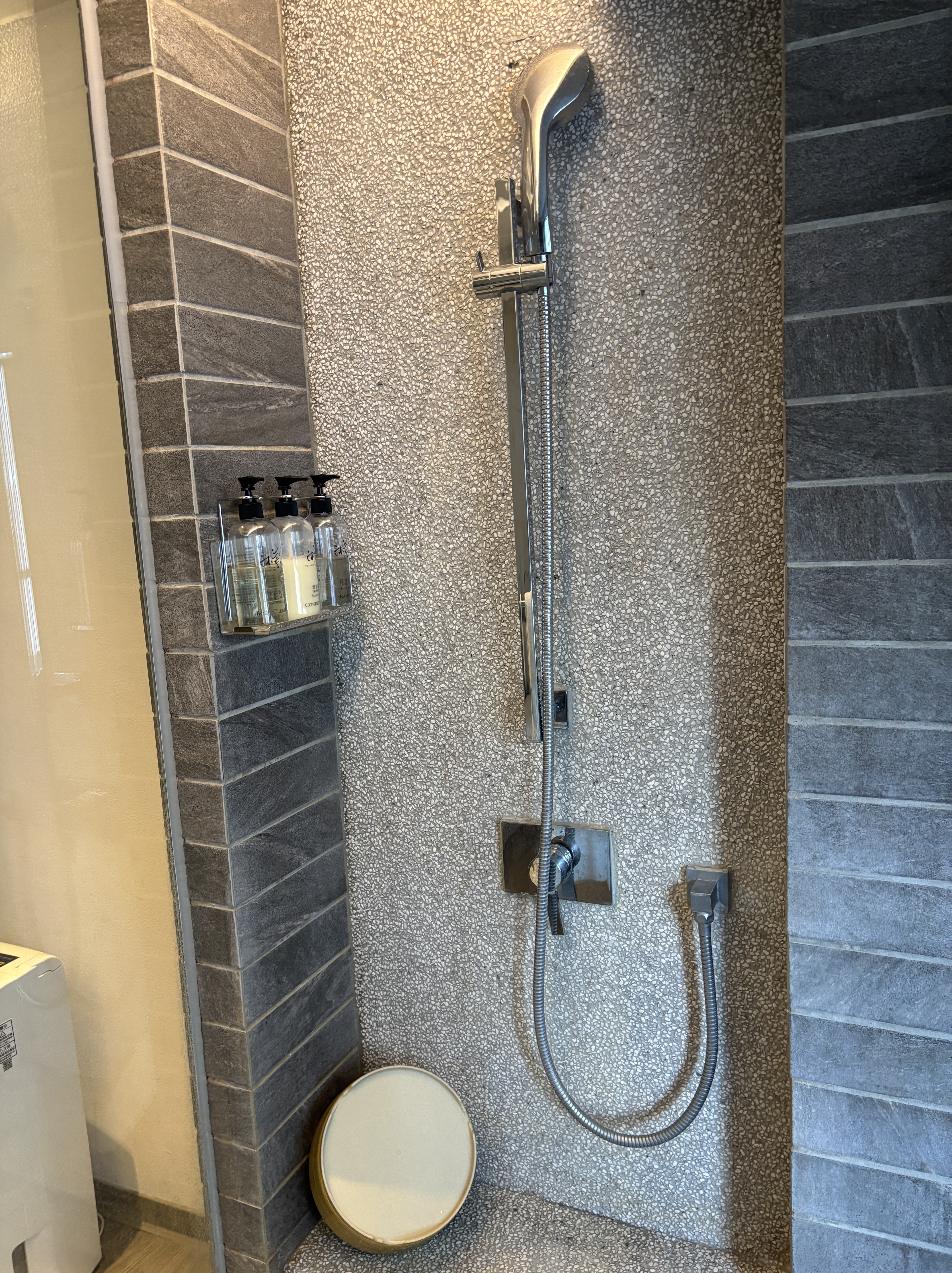 We love the simple, streamlined aesthetic of the room, but the space was unbelievably cramped. There was barely any space to put our giant luggages. We placed one larger-sized luggage on the rack next to the door, but the catch is that the door would be blocked if we open the luggage to retrieve our things. Before check-out, I had to push the entire luggage out to the corridor to be able to pack properly!