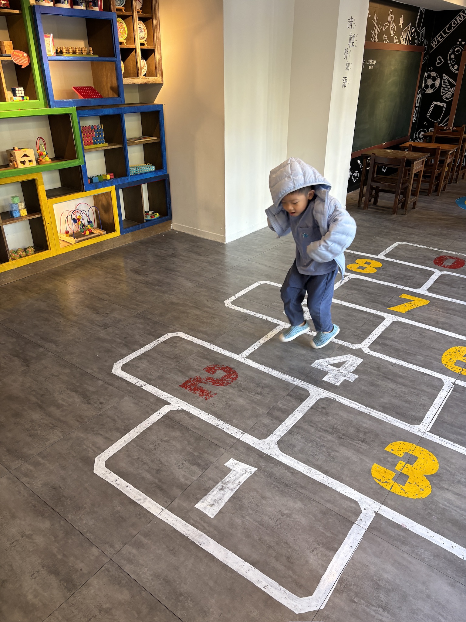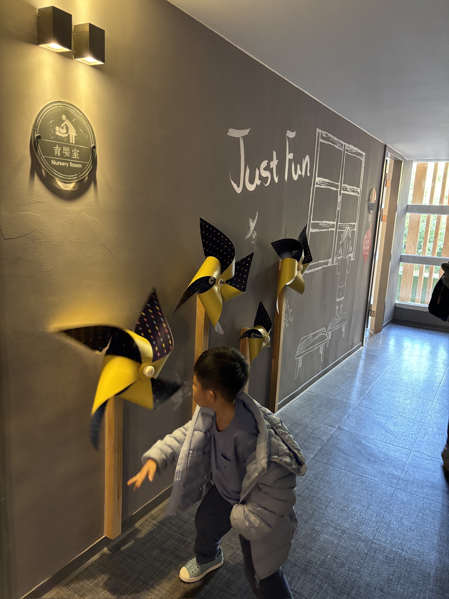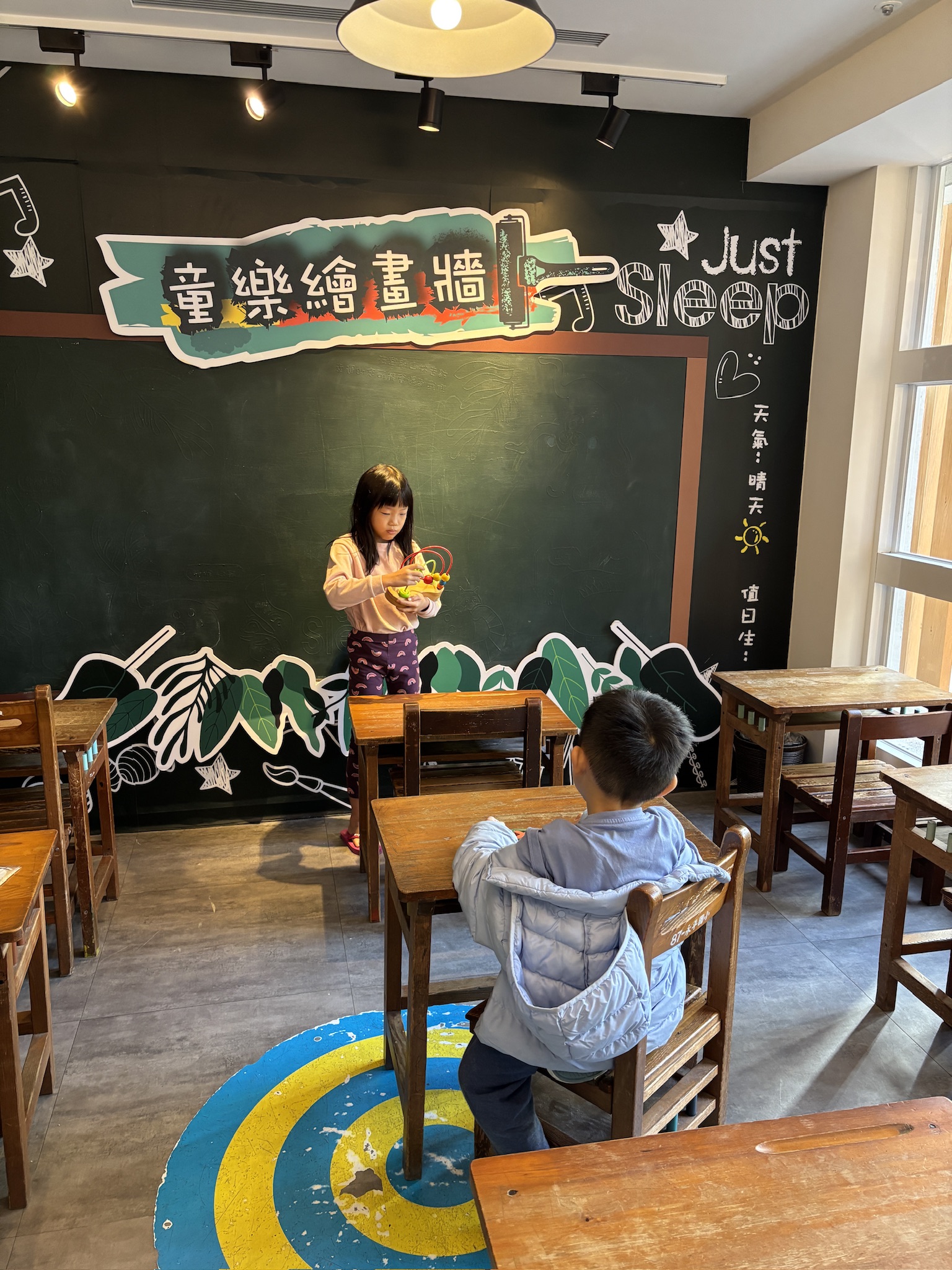 At the nursery, it felt like the good old times as the space featured not just a hopscotch but also an old Taiwanese classroom. They pretended to be teacher and student for a while, then hopped around. There were also wooden toys that suited younger kids.