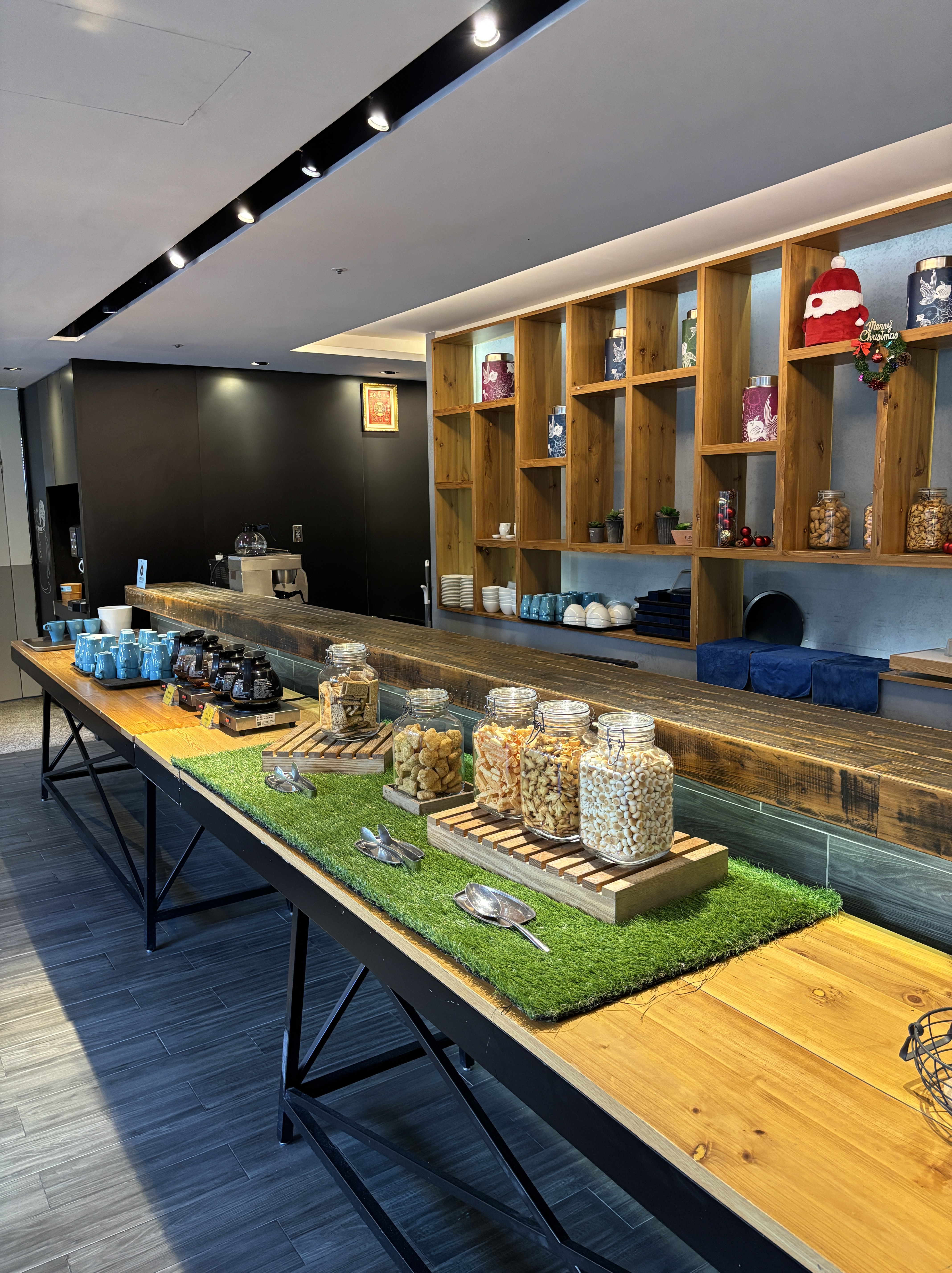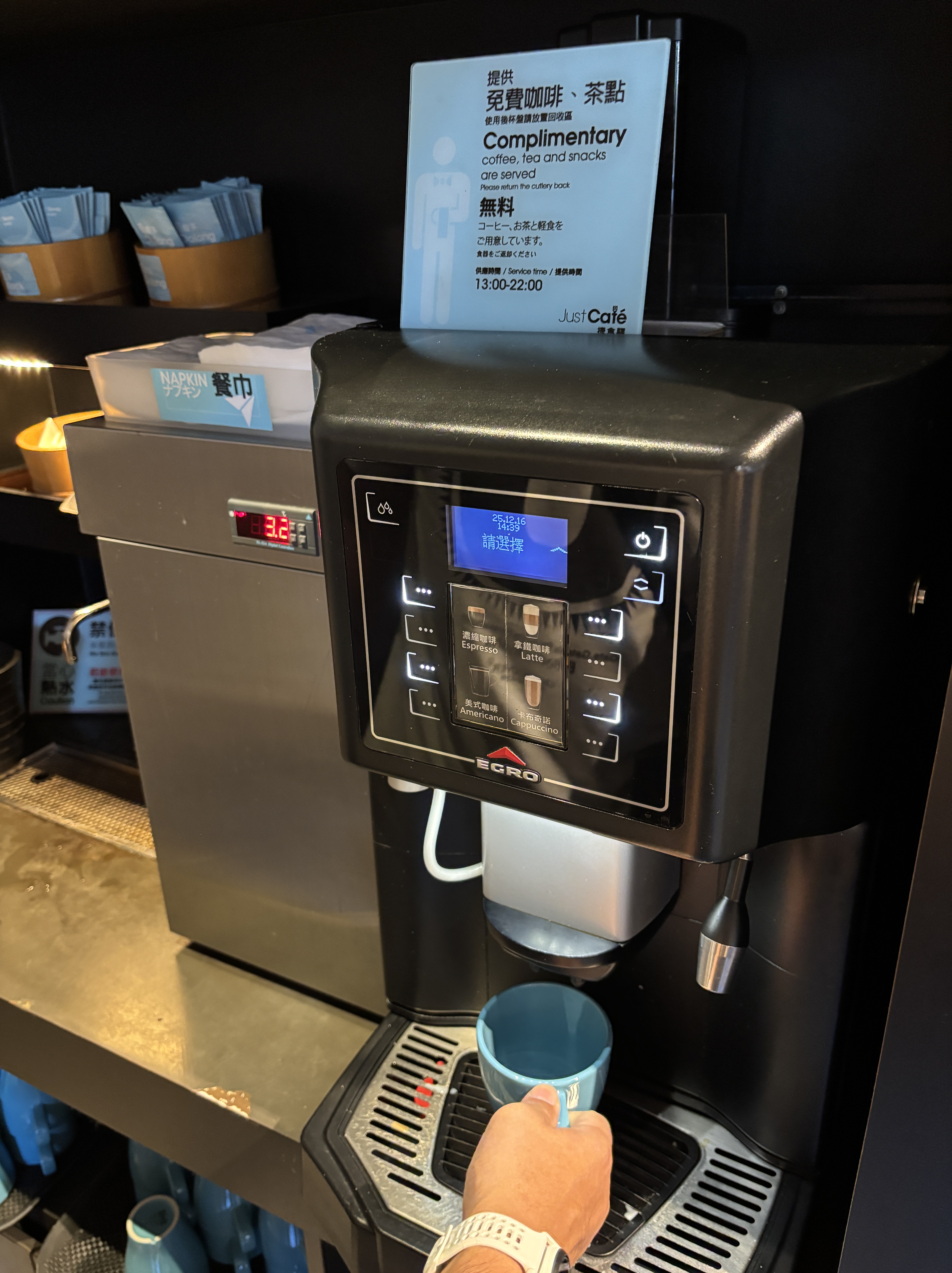 While the kids had the pool to themselves, we grown-ups helped ourselves with complimentary coffee/tea and crunchy snacks at JustCafe.