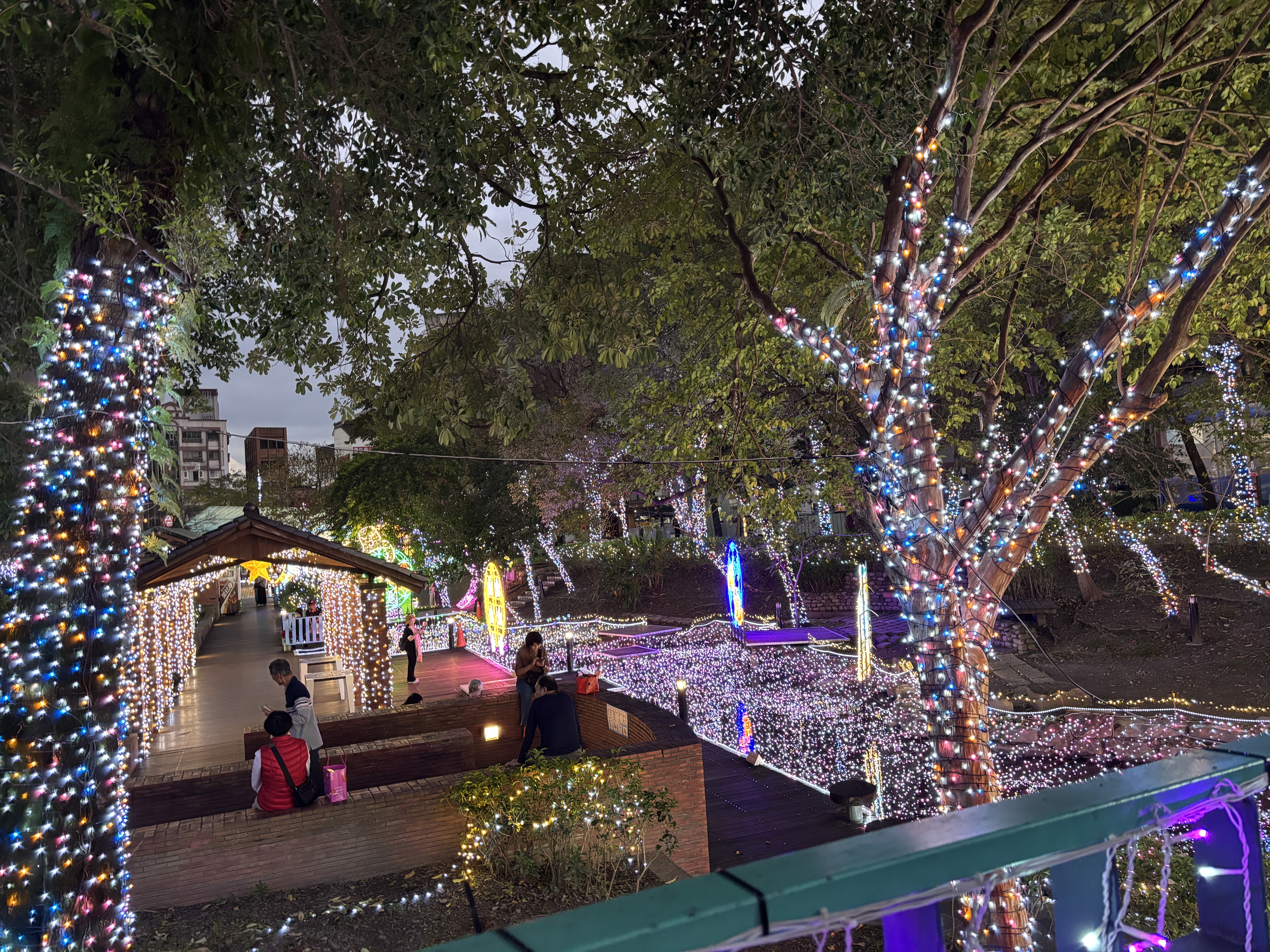 After we refreshed ourselves, we were ready to take an evening stroll down to Tangweigou Hotspring Park. The reception staff showed us a map and told us it was just an 11-minute walk away. Not far or difficult at all. She even told us that there would be pretty lights once night falls and told us not to miss it.