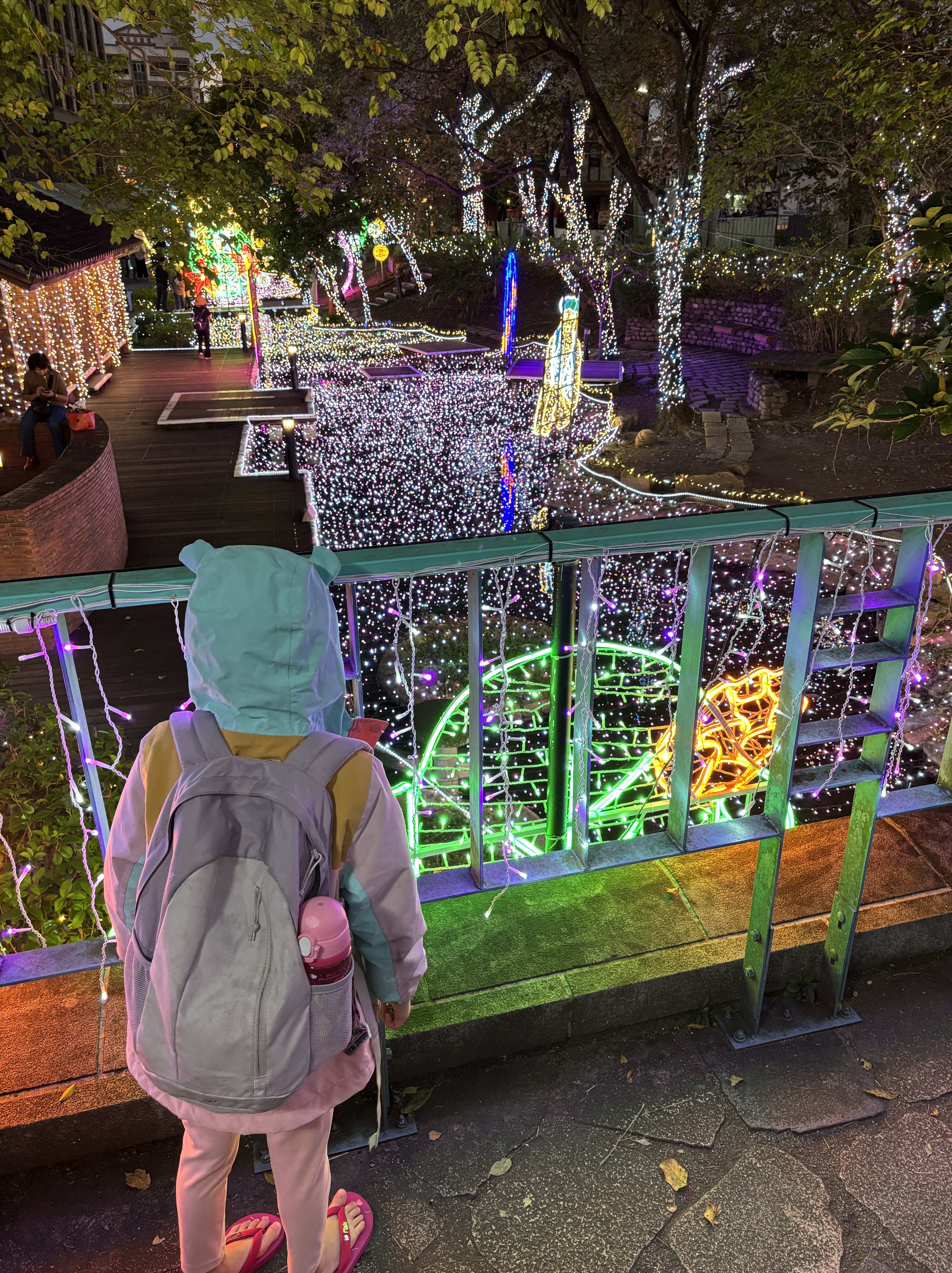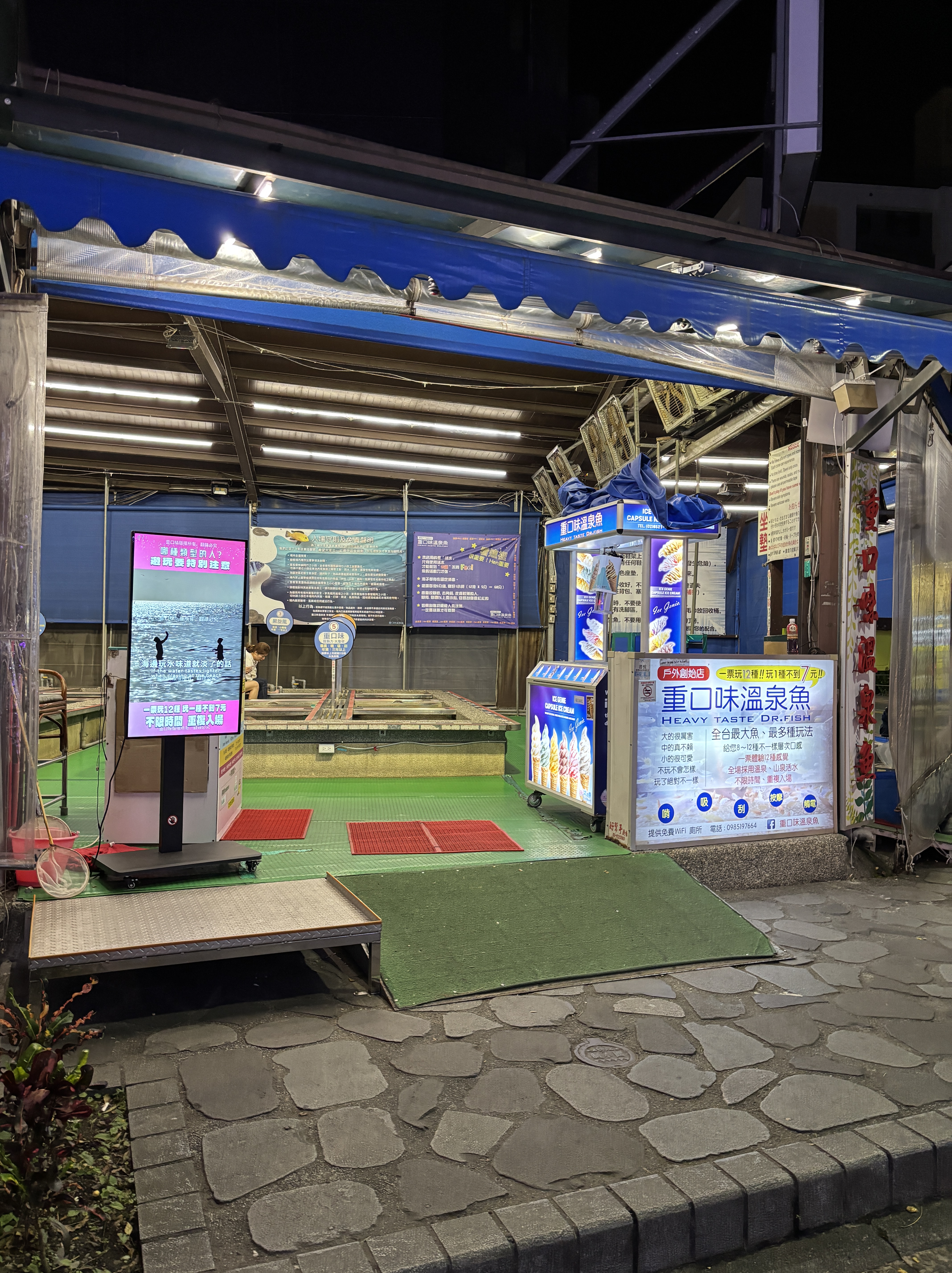 Tangweigou Hot Spring Park truly comes alive at night with a small but lively night market atmosphere. Lined with casual eateries and snack stalls, it was an easy place to wander without feeling overwhelmed — perfect with kids in tow. The highlight for many visitors is the free public footbath, where you can soak your feet in warm spring water while watching the world go by. It’s very local, and very much part of Jiaoxi’s everyday rhythm.