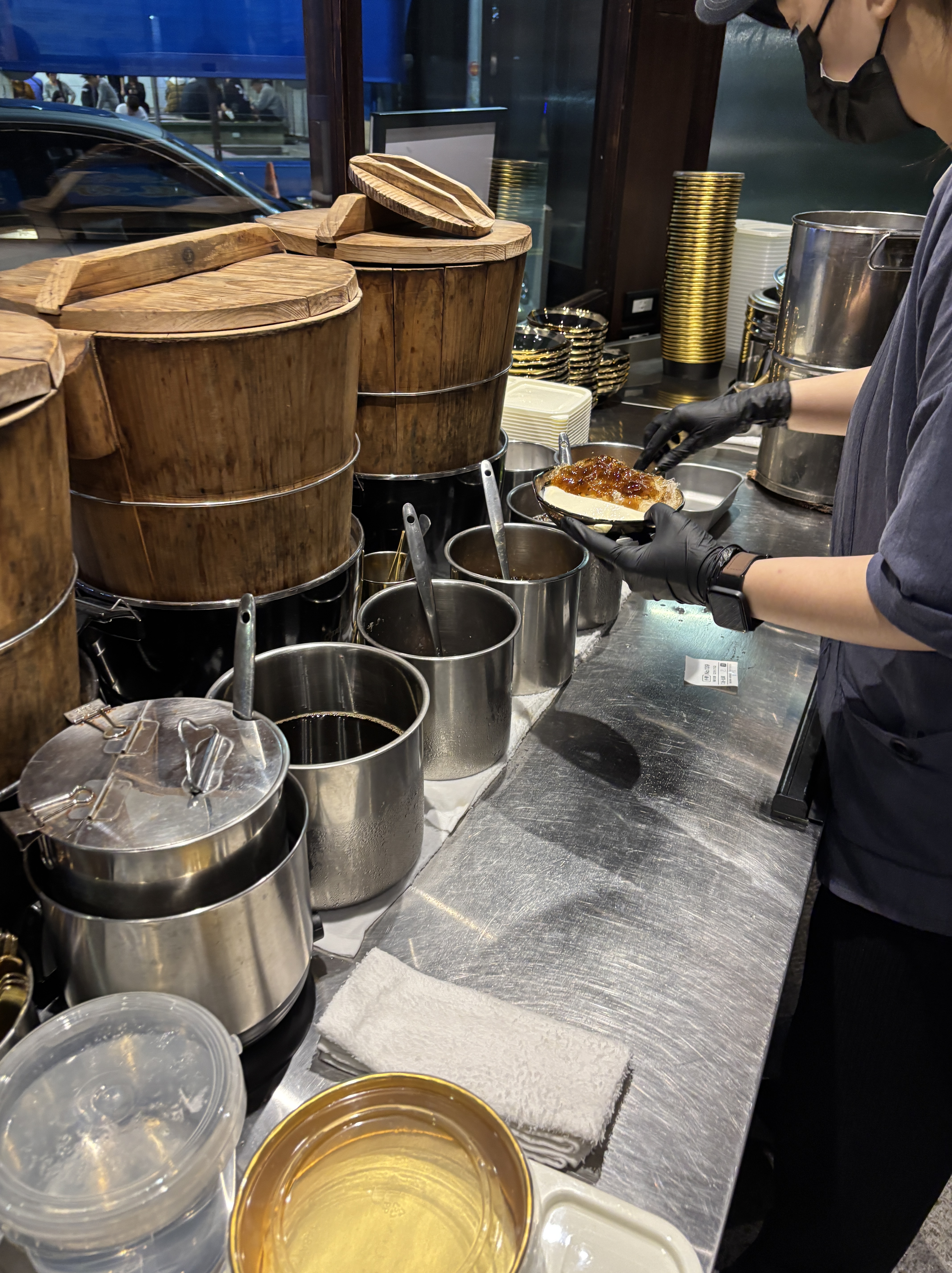 We also spotted this lovely shop selling soya beancurd and couldn’t resist popping in for a bowl. The interior was really cramped, but once you ordered, they would get a seat for you. We got one of their signatures: soya beancurd with grass jelly and crushed peanuts, adorned with a single coriander leaf. So pretty, super yummy and perfect as a winter dessert!